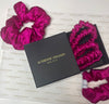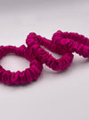 Experience the ultimate in hair care with our Magenta 100% Pure Mulberry Silk Scrunchies, crafted from 30 momme silk—the highest quality thickness for exceptional softness and lasting durability. Unlike standard hair ties that can cause breakage, these scrunchies gently protect your hair, support length retention, and maintain a healthy, radiant appearance. Available in small, medium, and large sizes, they offer a comfortable fit for every hair type. Elevate your daily routine with a touch of expert hair protection and effortless style.